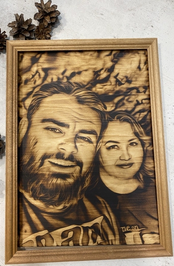 В отличие от портретов, выжженных лазером, наши работы отличаются невероятной плавностью переходов и мягкостью линий. Мы бережно сохраняем полутона, чтобы передать всю глубину и выразительность образа.